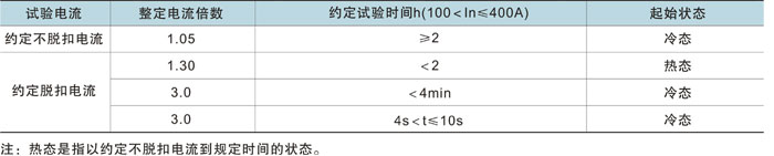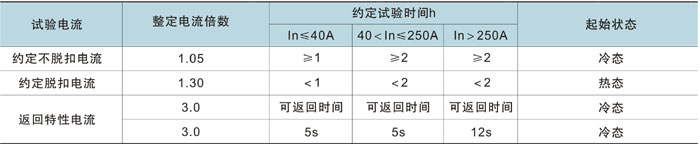 | 配電用斷路器反時(shí)限特性見(jiàn)下表 |